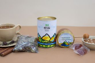 - чай авторского купажа «Душа Алтая»: (состав: чай чёрный крупнолистовой высшего сорта, душица, шиповник, лист брусники, лист смородины), 30 г;